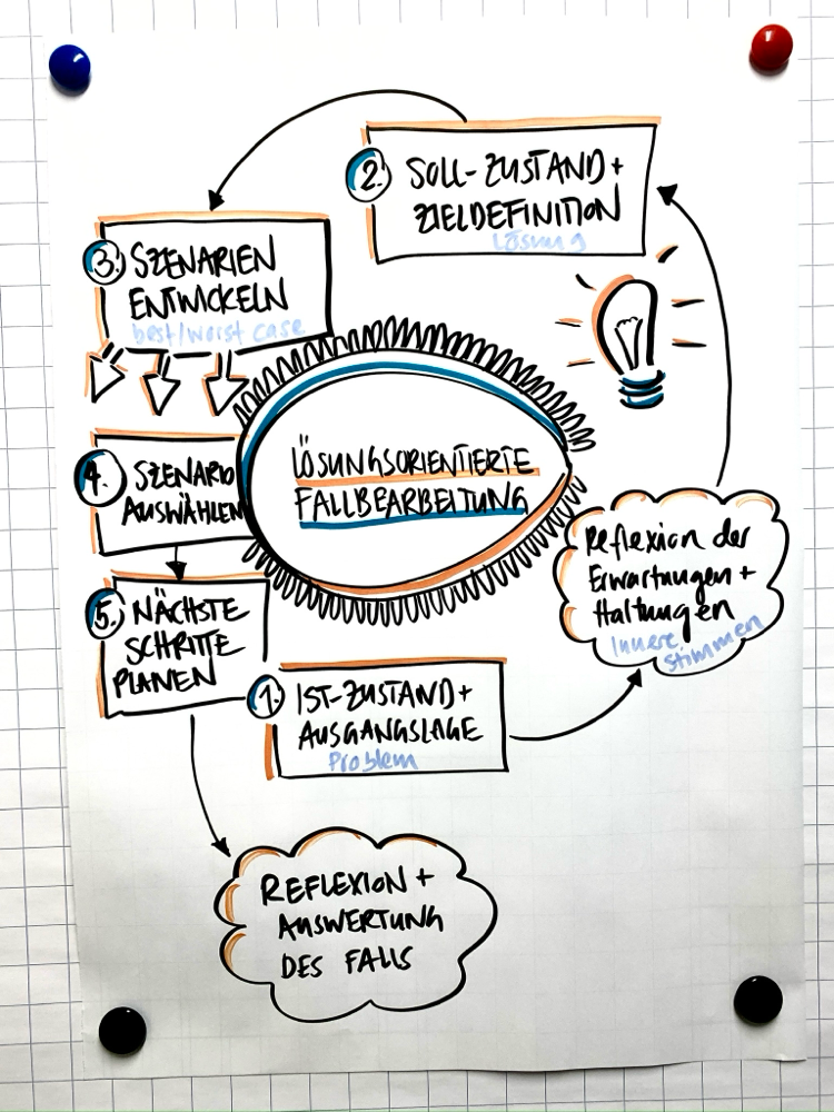 Die Soziale Arbeit ist ein herausforderndes Tätigkeitsfeld und die Fachpersonen müssen sich und ihr Handeln immer wieder reflektieren, um im Tripelmandat passende Lösungen auf allen Ebenen zu ermöglichen. Regelmässige moderierte Fallsupervisionen helfen dabei, immer wieder verschiedene Perspektiven in das eigene Handeln einfliessen zu lassen und die Professionalität zu sichern.